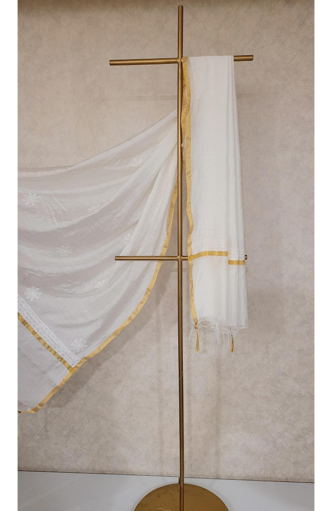 Rohia By Chhangamal Hand Embroidered Chanderi Chikankari Hand Crafted Light Weight Dupatta in Bakhiya Work. This is perfect for Casual Summer Wear. This Chikankari Dupatta has the embellishment just at the right place that makes this dupatta unique. The White Clasic Shade is ecstatic and gives a royal look.