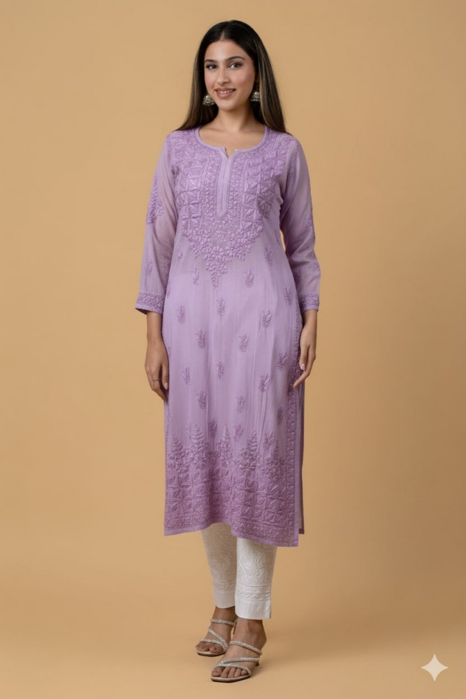 Rohia By Chhangamal Hand Embroidered Modal Chikankari Hand Crafted Light Weight Kurti in Ghass Patti Work. This is perfect for Casual Summer Wear.