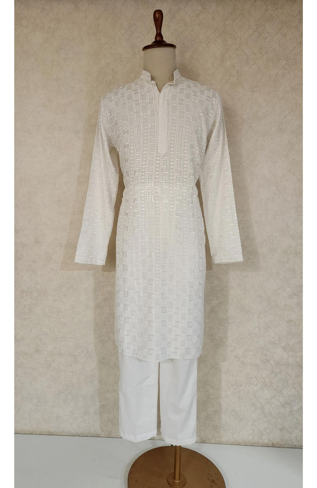 Rohia By Chhangamal Rayon Hakoba work, Mendarine collar design along with buttons placed on the neck placket runs on the kurta. The colour, Hakoba and fabric of the kurta offer a relaxed Fit and comfort to the wearer.
